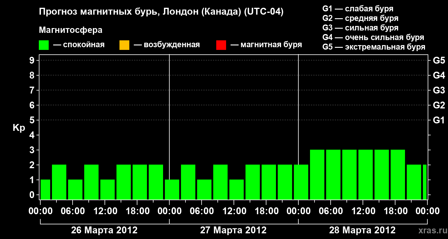 Прогноз магнитных бурь Лондоне (Канада) — 26 марта 2012 года