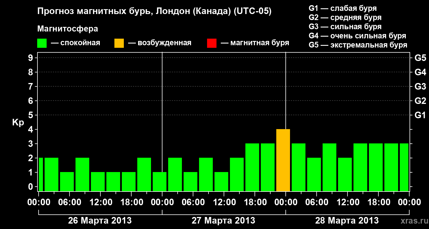 Прогноз магнитных бурь Лондоне (Канада) — 26 марта 2013 года
