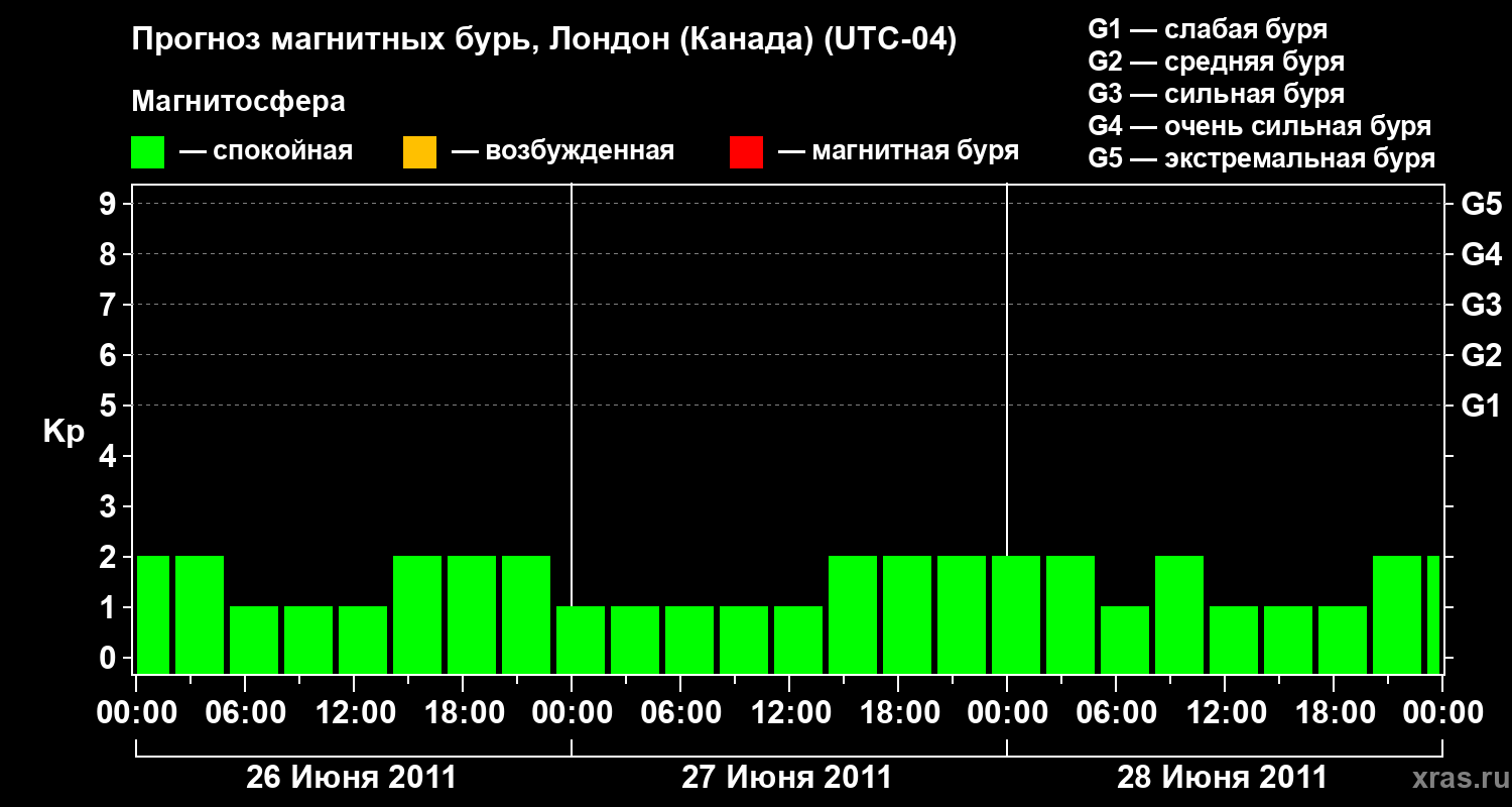Прогноз магнитных бурь Лондоне (Канада) — 26 июня 2011 года
