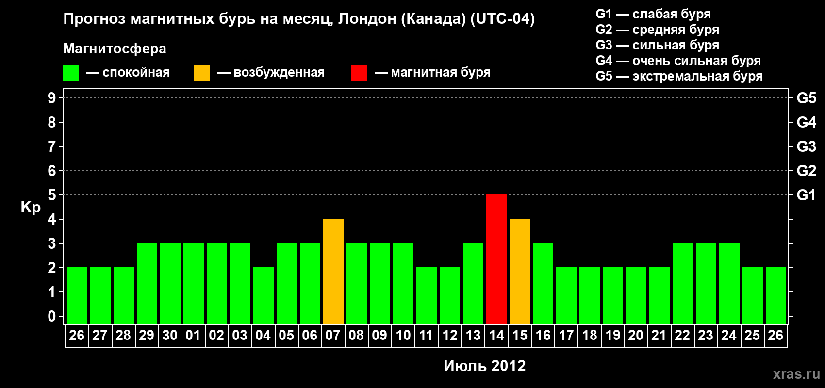 Прогноз магнитных бурь Лондоне (Канада) — 26 июня 2012 года