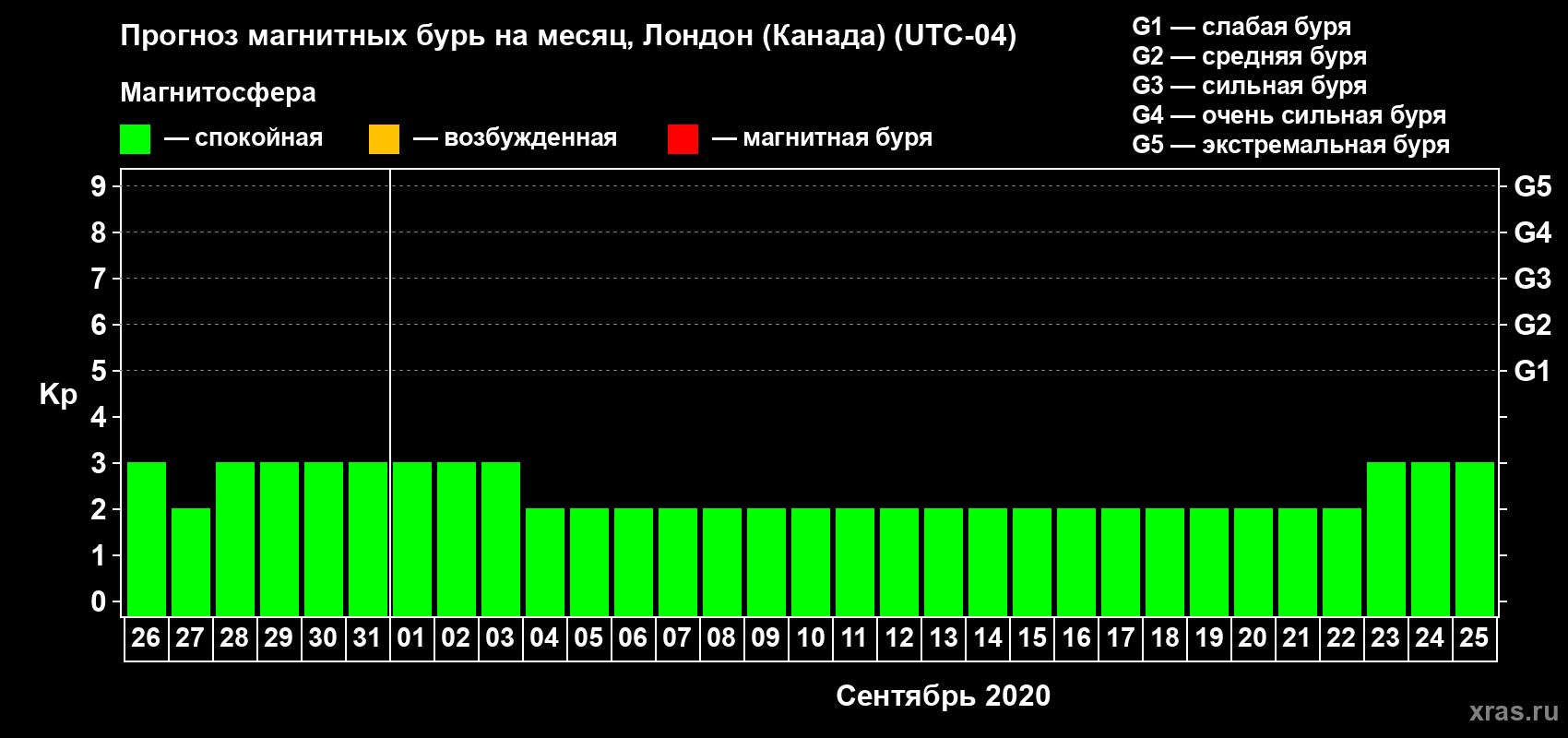 Прогноз магнитных бурь Лондоне (Канада) — 26 августа 2020 года