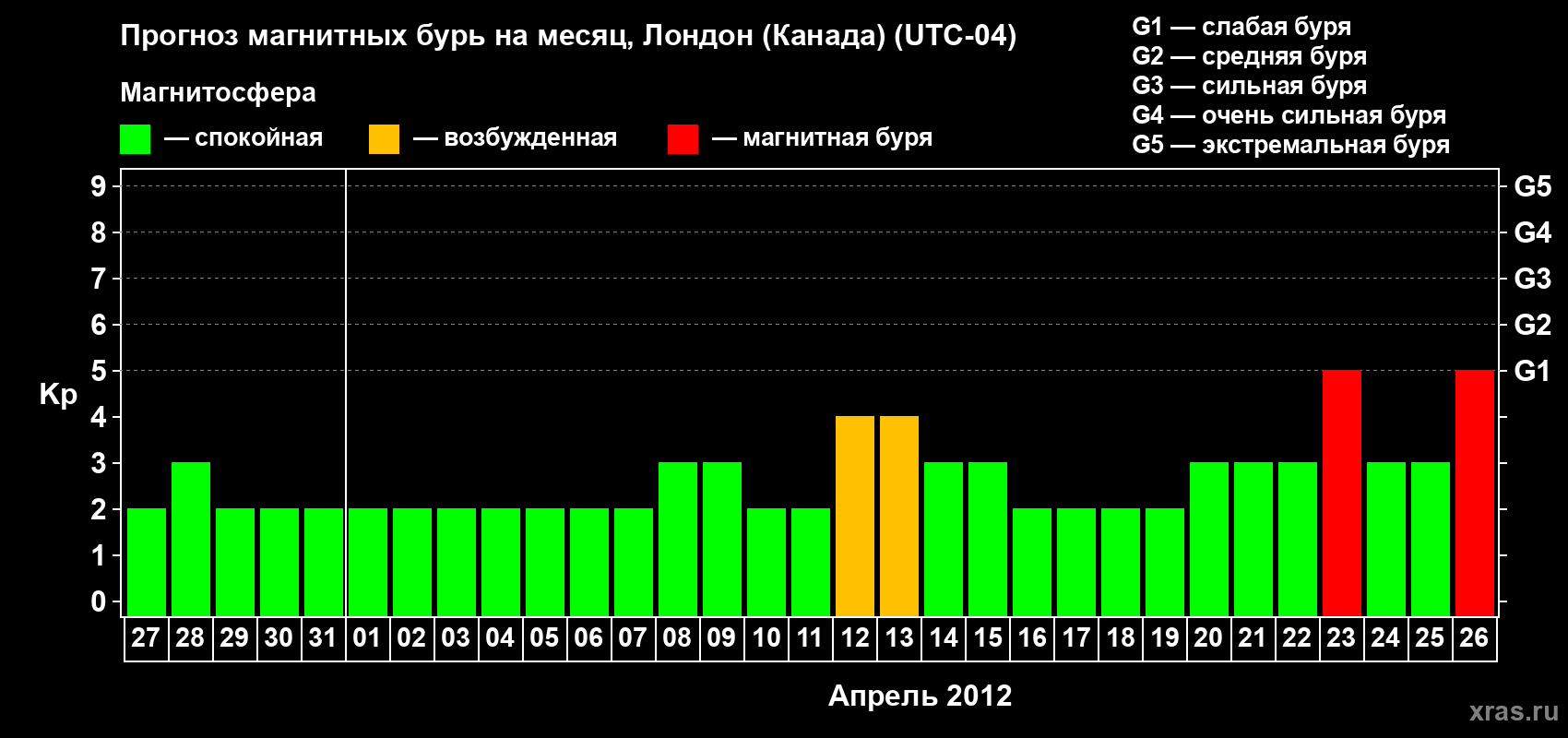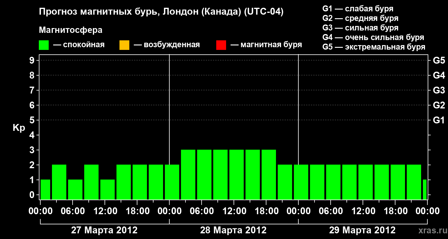 Прогноз магнитных бурь Лондоне (Канада) — 27 марта 2012 года