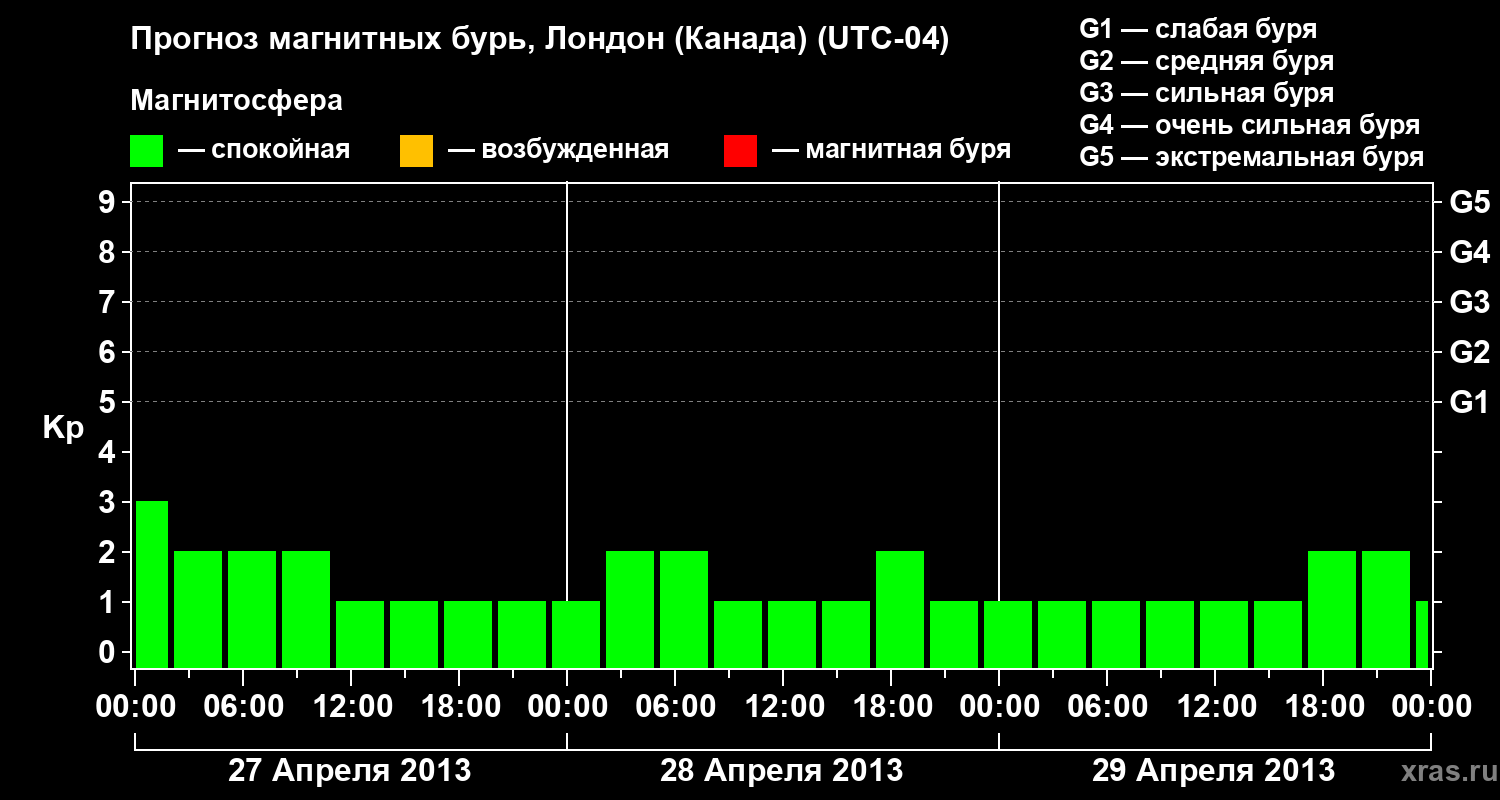 Прогноз магнитных бурь Лондоне (Канада) на 27 апреля 2013 года
