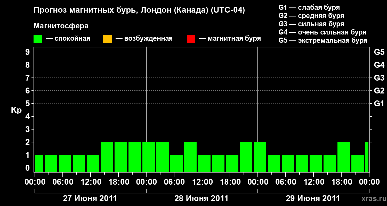 Прогноз магнитных бурь Лондоне (Канада) — 27 июня 2011 года