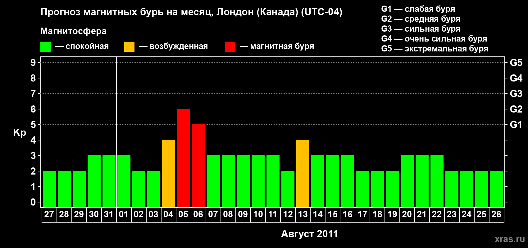 Прогноз магнитных бурь Лондоне (Канада) — 27 июля 2011 года