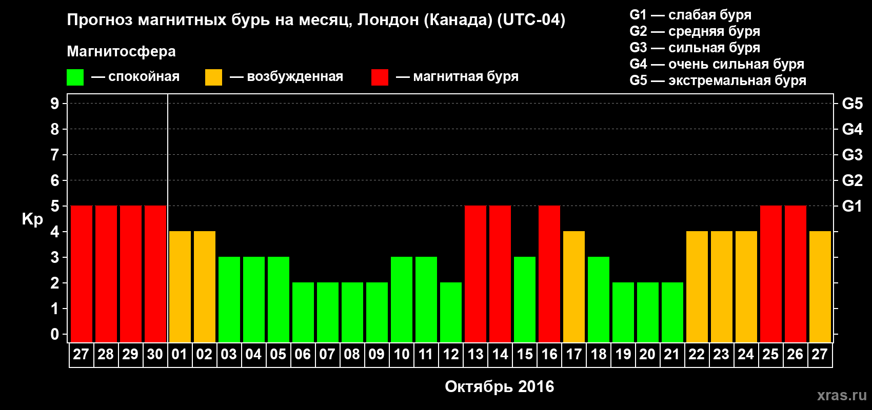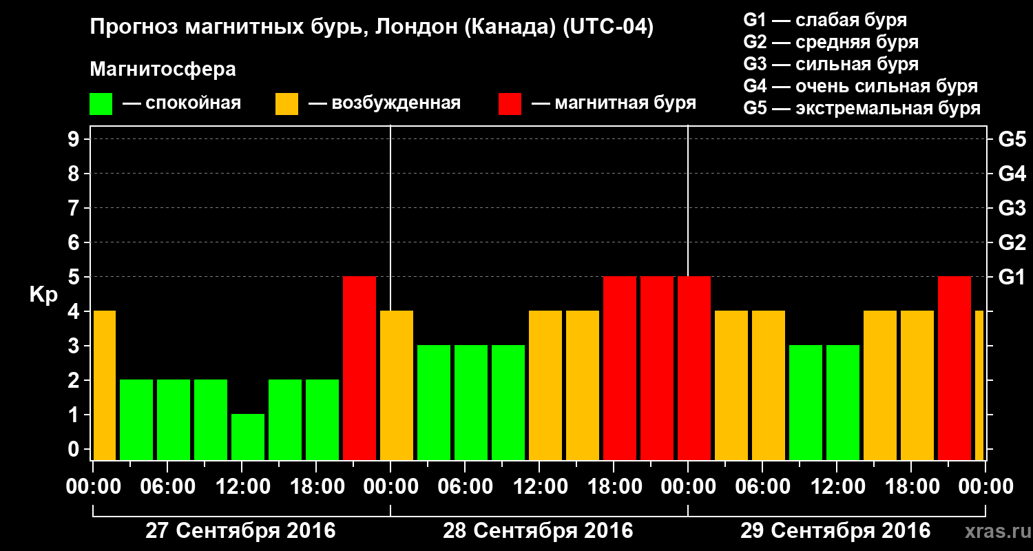 Прогноз магнитных бурь Лондоне (Канада) — 27 сентября 2016 года