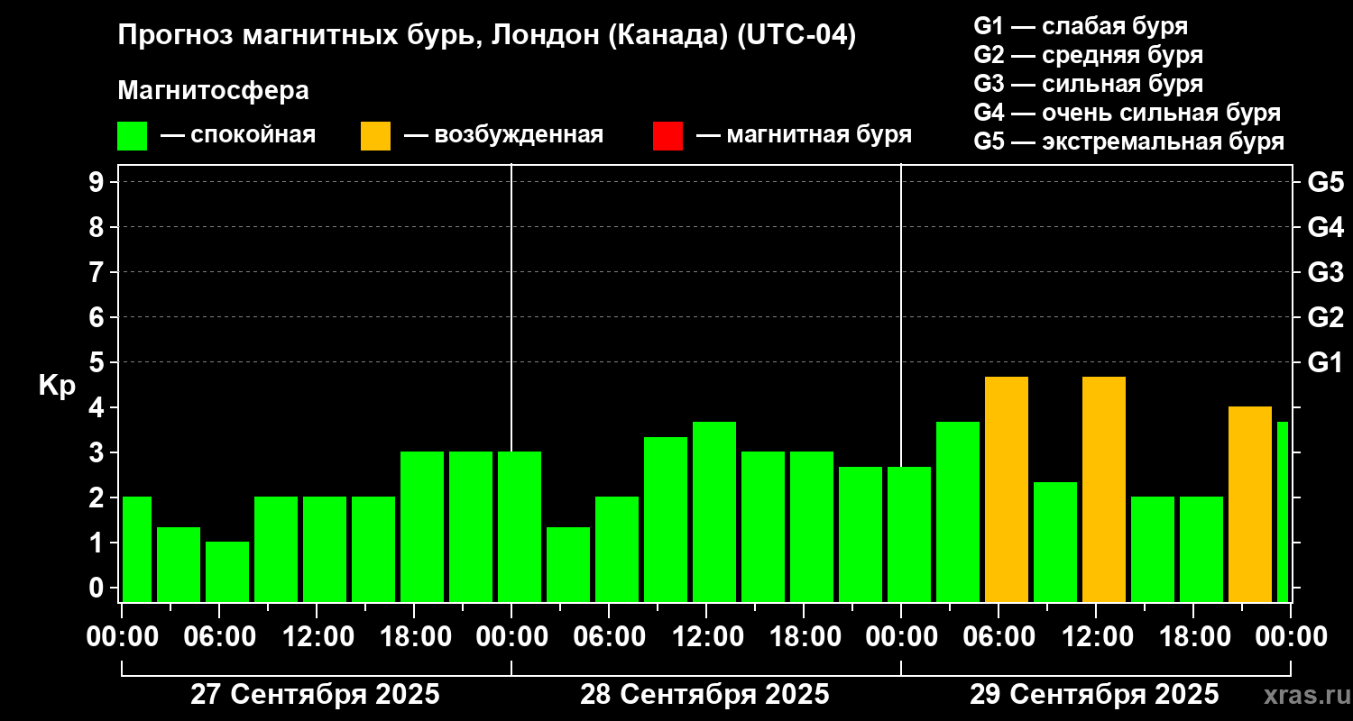 Прогноз магнитных бурь Лондоне (Канада) на 27 сентября 2025 года