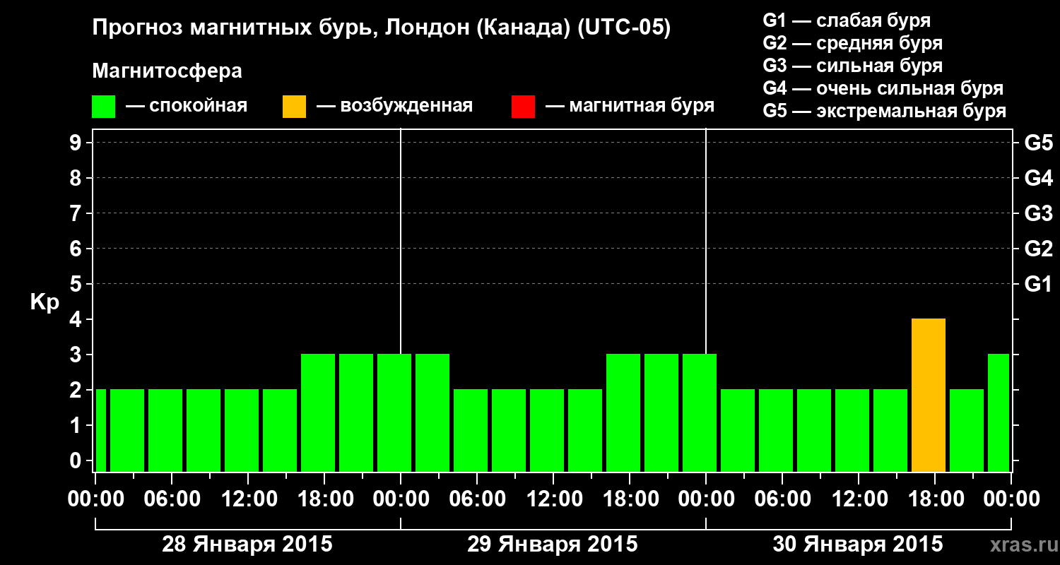 Прогноз магнитных бурь Лондоне (Канада) — 28 января 2015 года