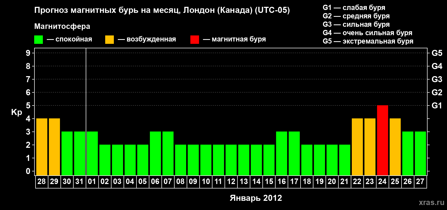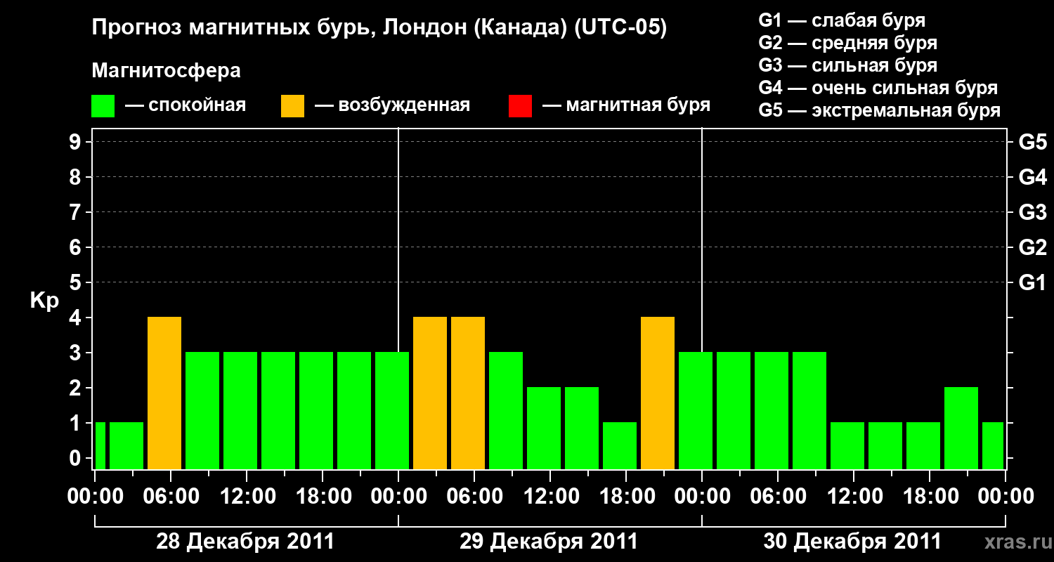 Прогноз магнитных бурь Лондоне (Канада) — 28 декабря 2011 года