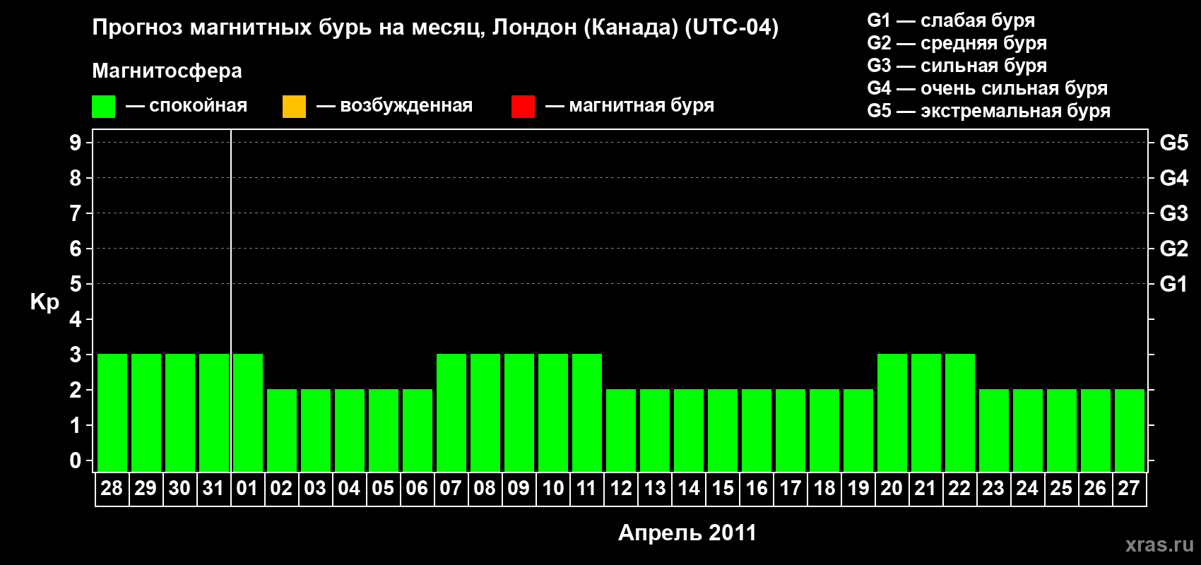 Прогноз магнитных бурь Лондоне (Канада) — 28 марта 2011 года