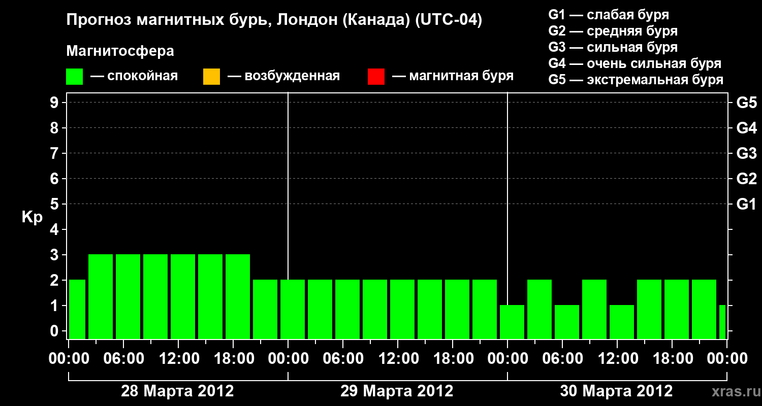 Прогноз магнитных бурь Лондоне (Канада) — 28 марта 2012 года