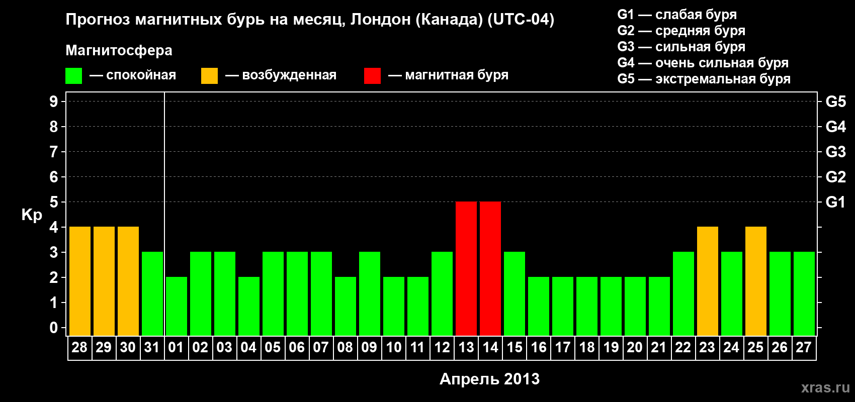 Прогноз магнитных бурь Лондоне (Канада) — 28 марта 2013 года
