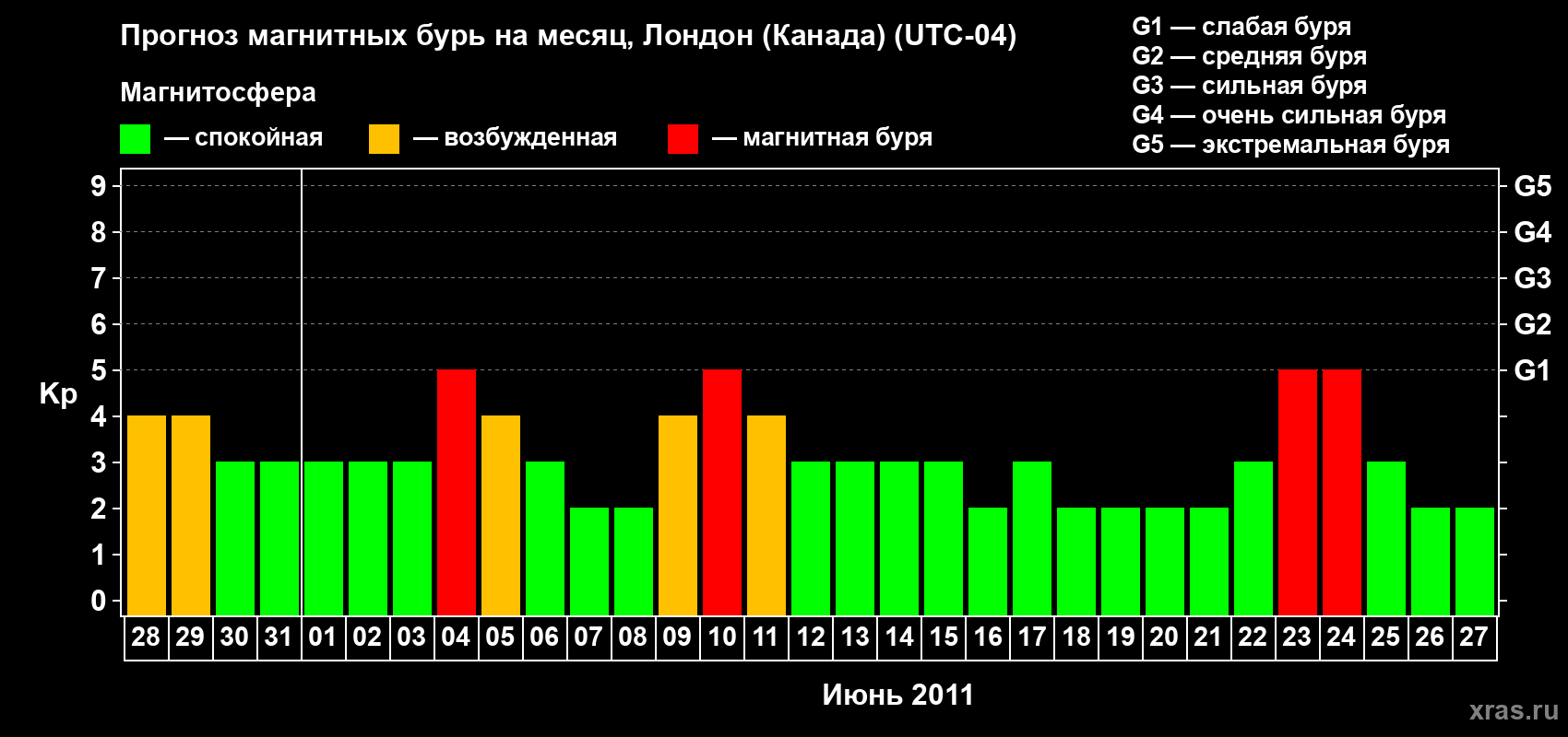 Прогноз магнитных бурь Лондоне (Канада) — 28 мая 2011 года