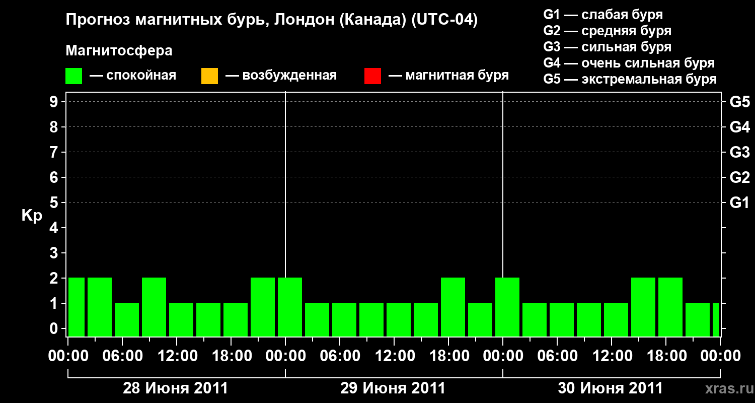 Прогноз магнитных бурь Лондоне (Канада) — 28 июня 2011 года
