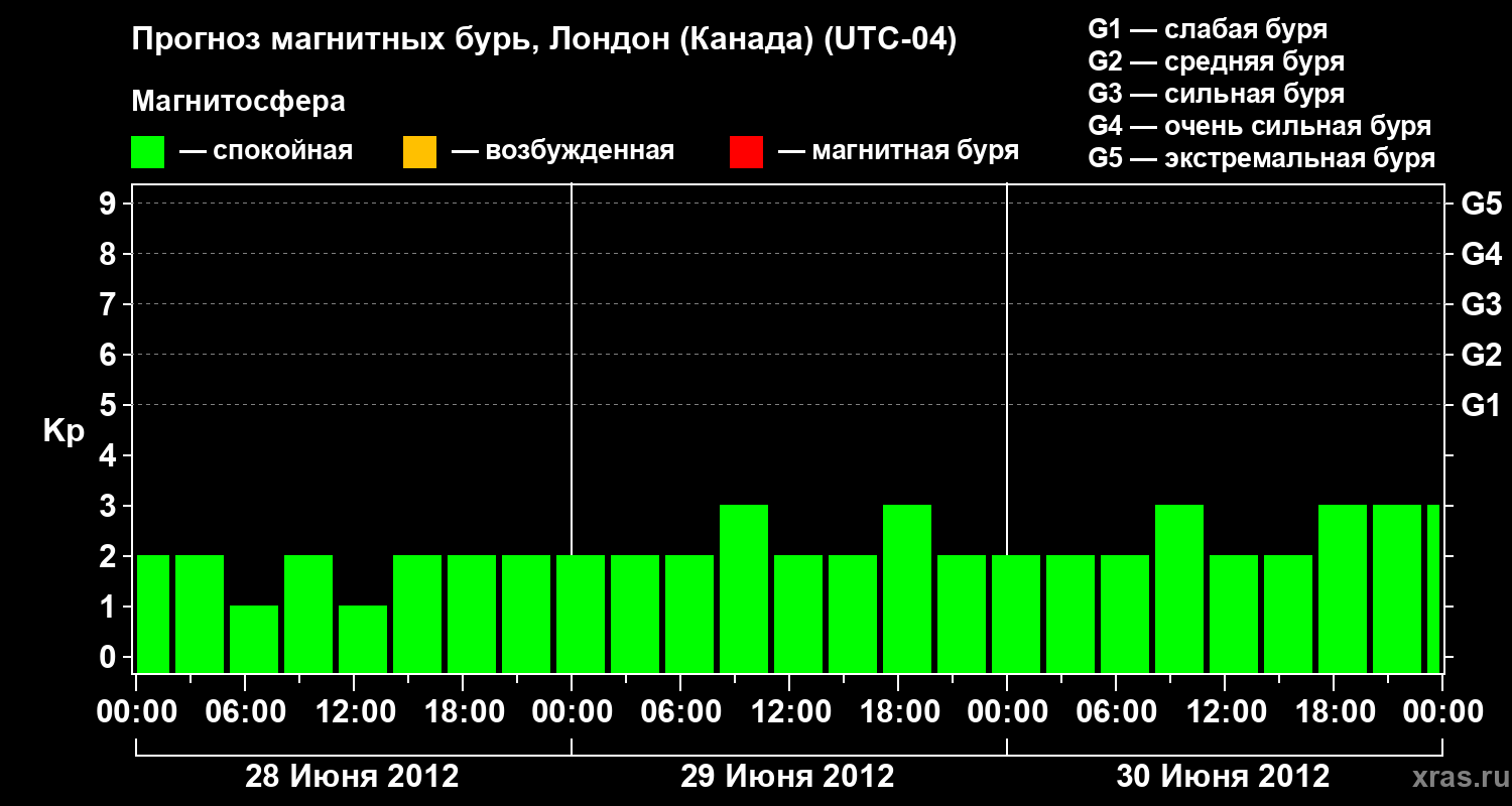 Прогноз магнитных бурь Лондоне (Канада) — 28 июня 2012 года