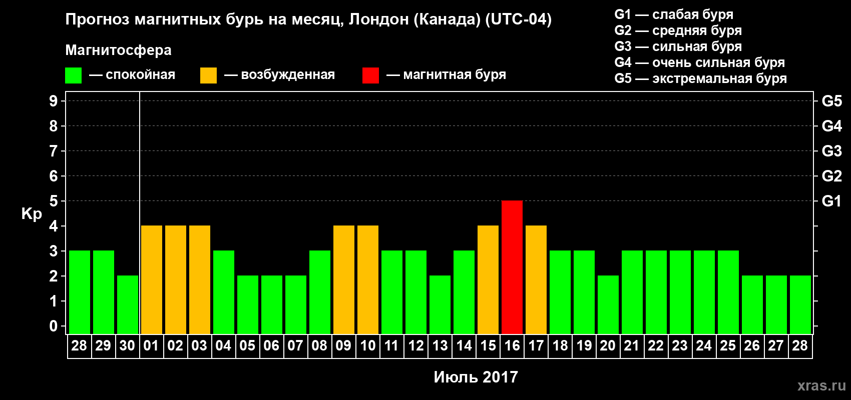 Прогноз магнитных бурь Лондоне (Канада) — 28 июня 2017 года