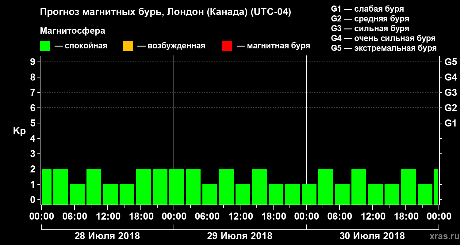 Прогноз магнитных бурь Лондоне (Канада) — 28 июля 2018 года