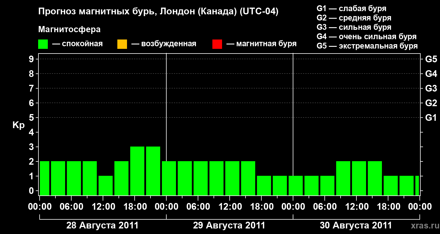 Прогноз магнитных бурь Лондоне (Канада) — 28 августа 2011 года