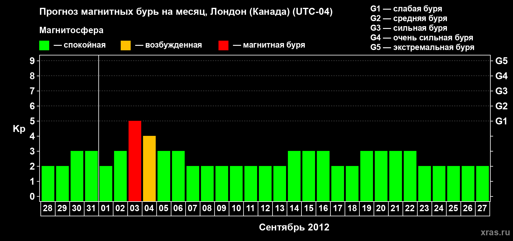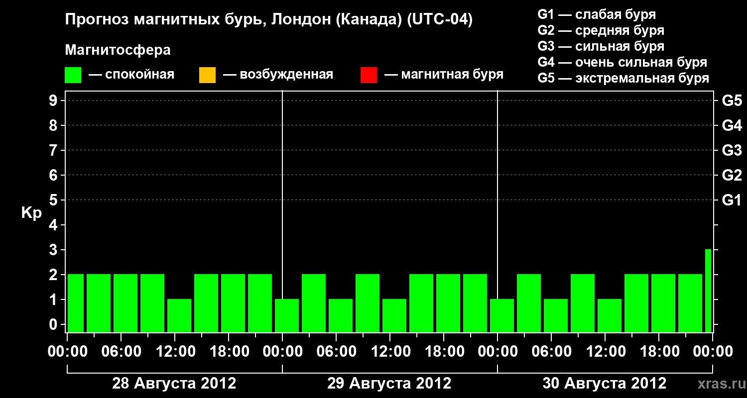 Прогноз магнитных бурь Лондоне (Канада) — 28 августа 2012 года