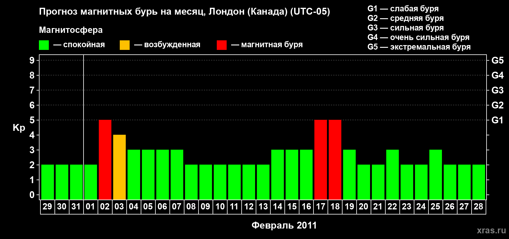 Прогноз магнитных бурь Лондоне (Канада) — 29 января 2011 года