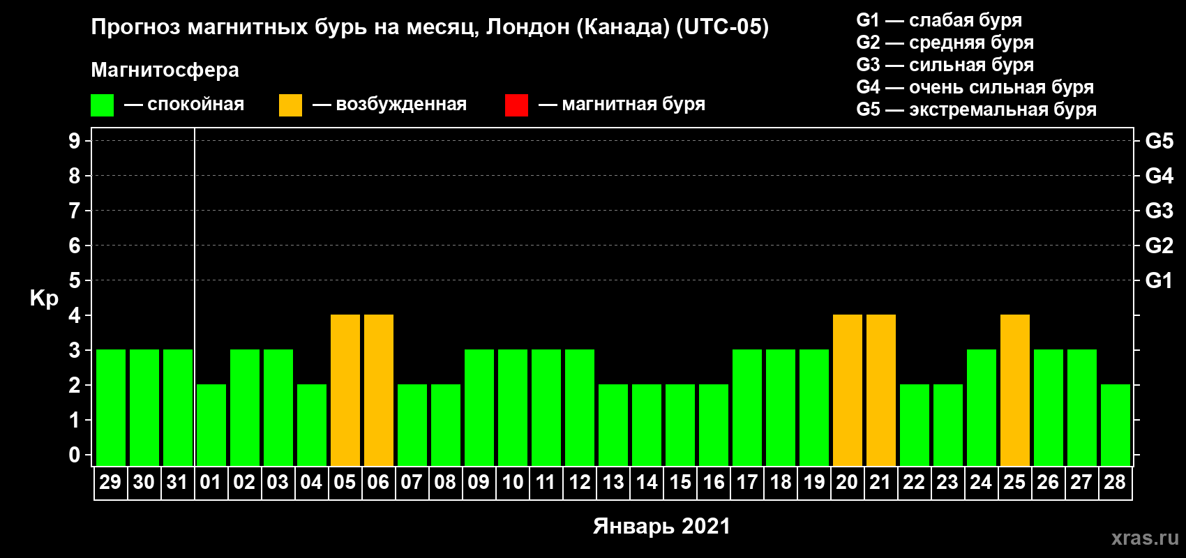 Прогноз магнитных бурь Лондоне (Канада) — 29 декабря 2020 года