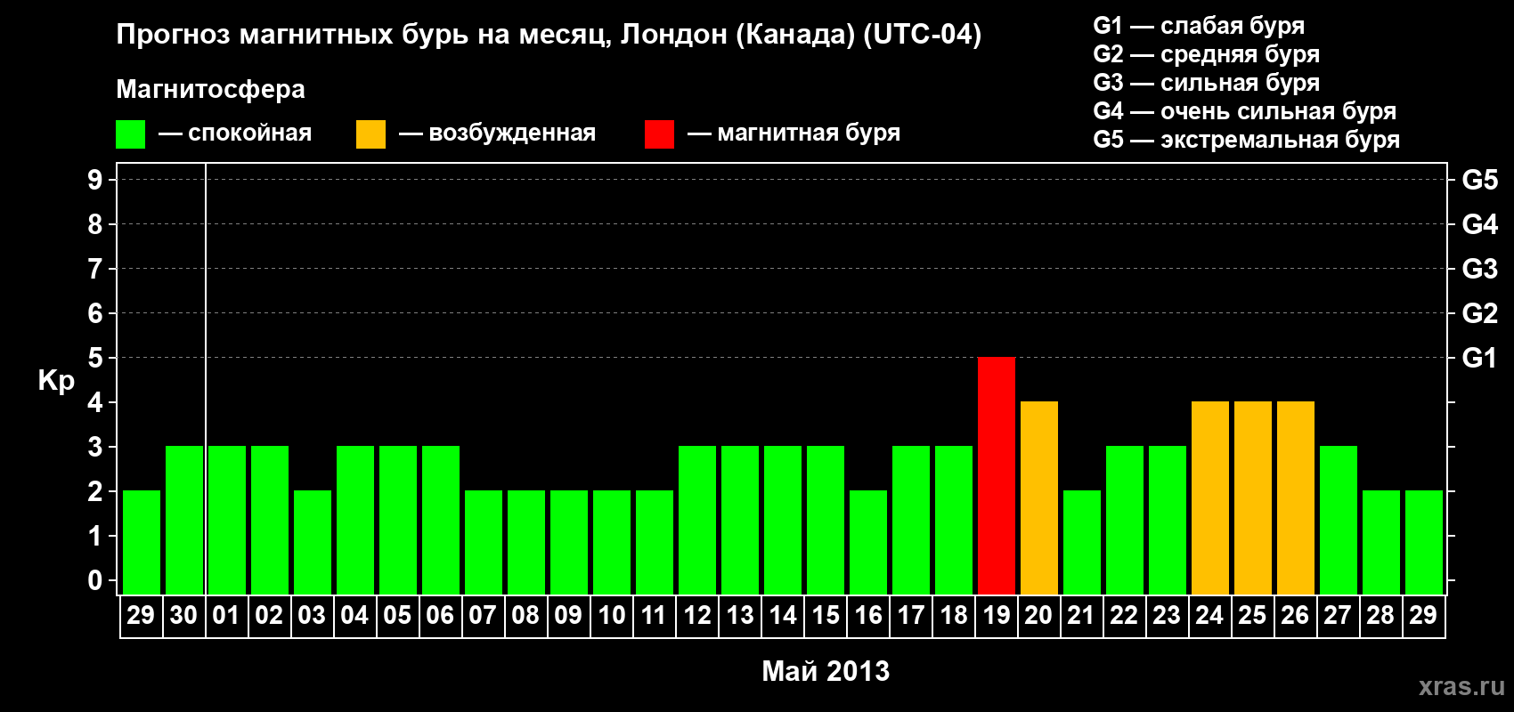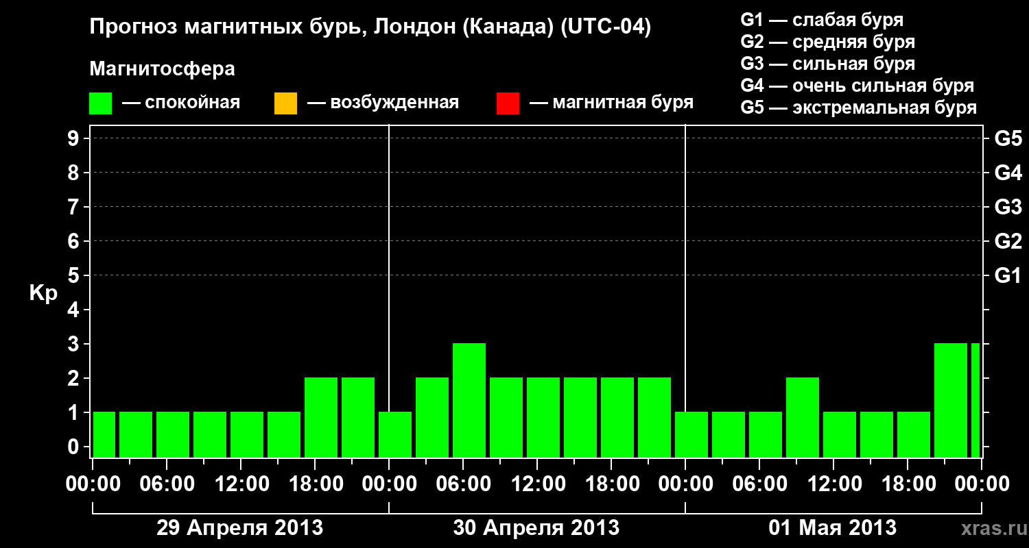 Прогноз магнитных бурь Лондоне (Канада) — 29 апреля 2013 года