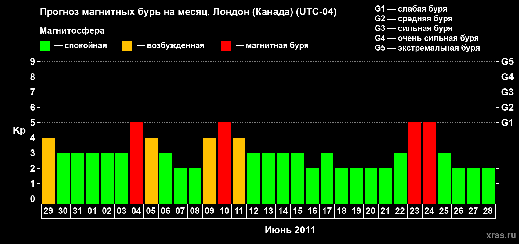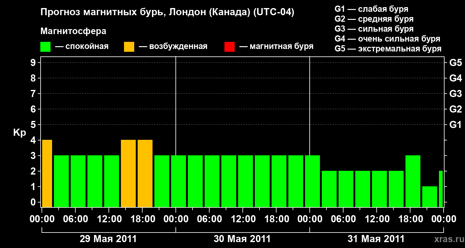 Прогноз магнитных бурь Лондоне (Канада) — 29 мая 2011 года