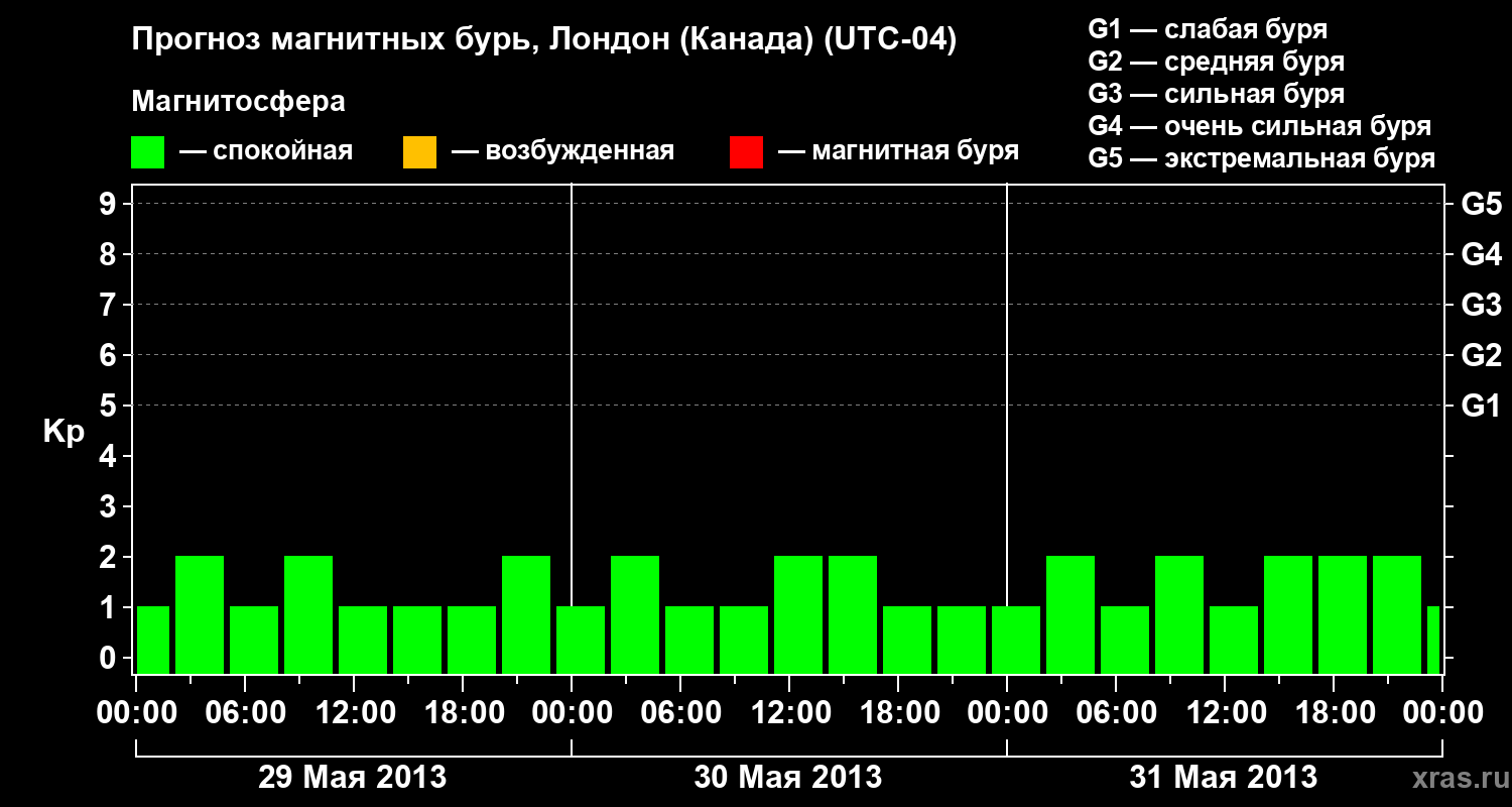 Прогноз магнитных бурь Лондоне (Канада) — 29 мая 2013 года