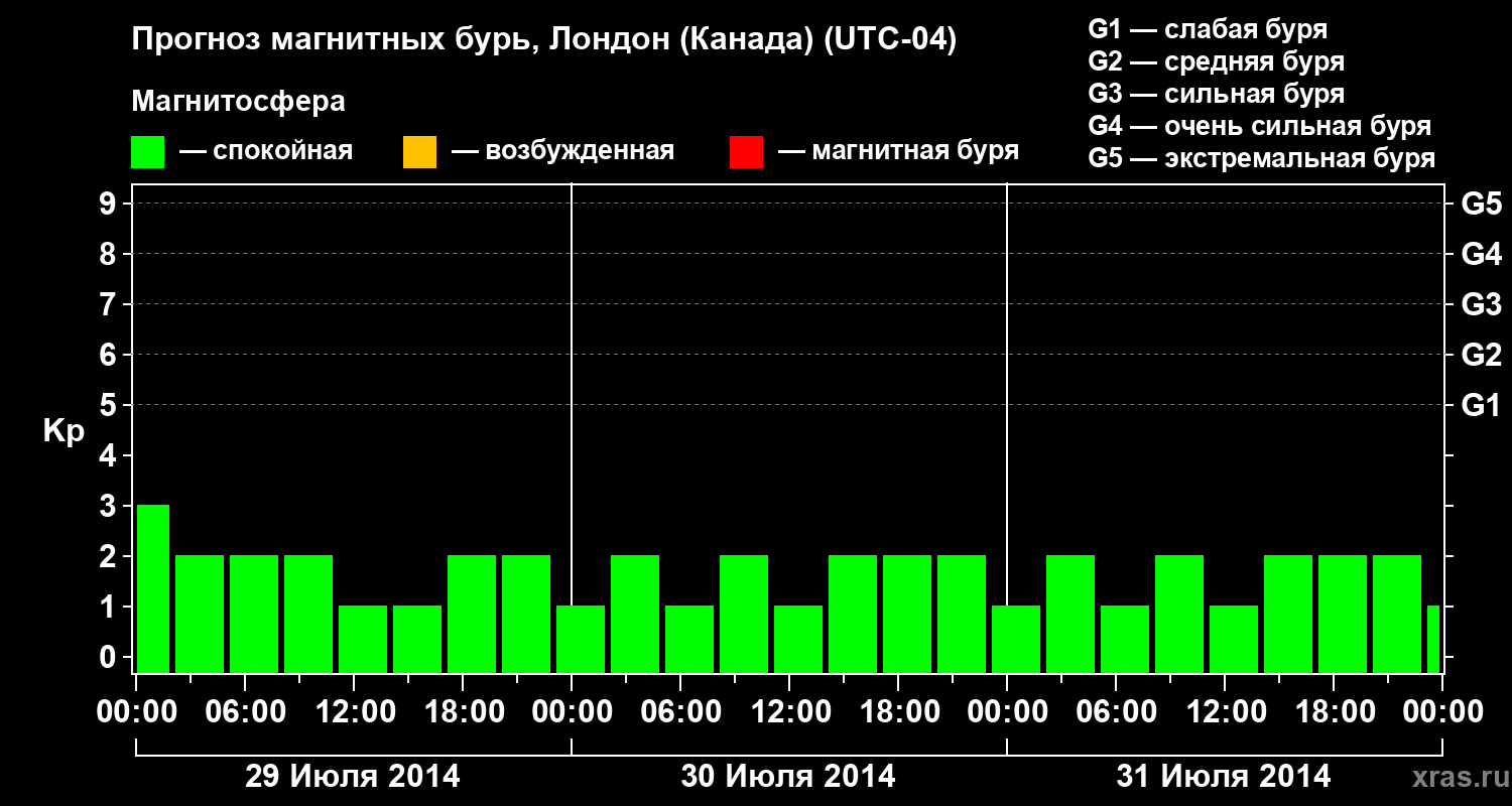 Прогноз магнитных бурь Лондоне (Канада) — 29 июля 2014 года
