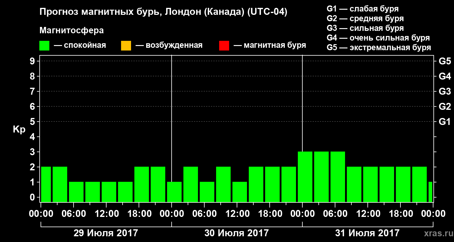 Прогноз магнитных бурь Лондоне (Канада) — 29 июля 2017 года