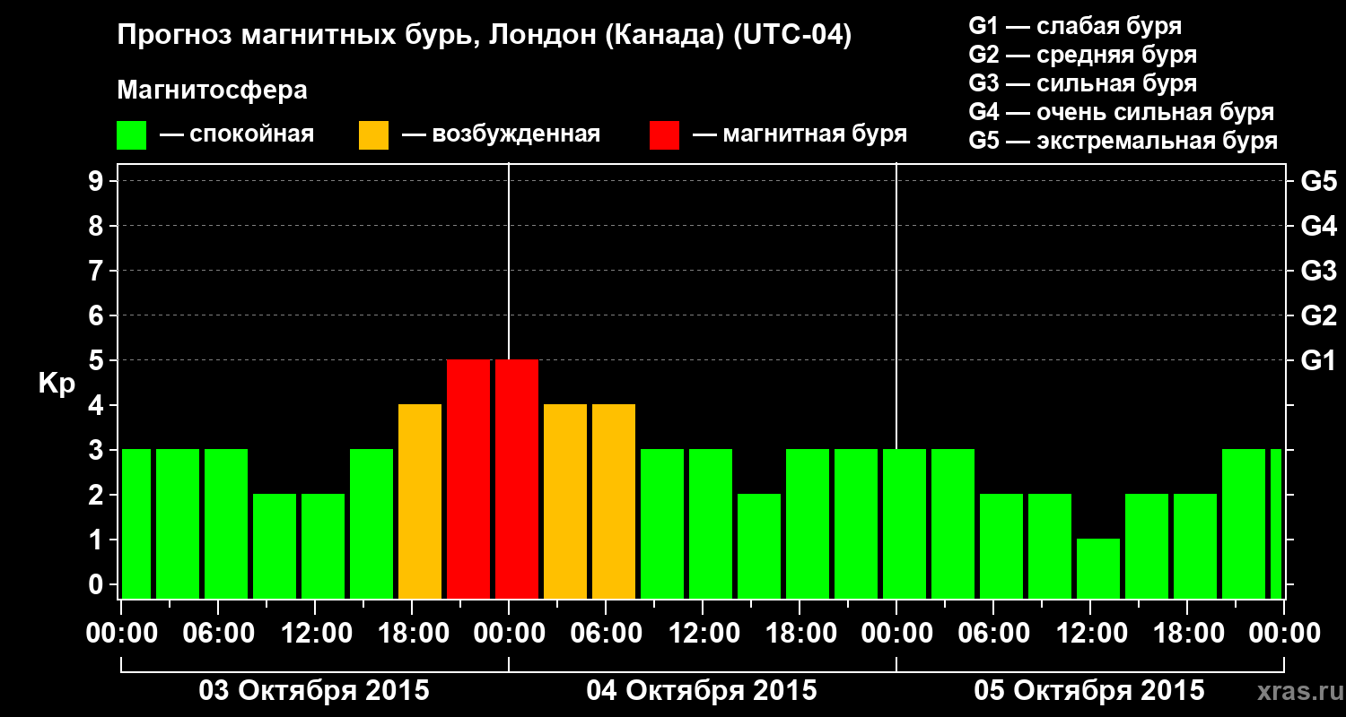 Прогноз магнитных бурь Лондоне (Канада) — 3 октября 2015 года