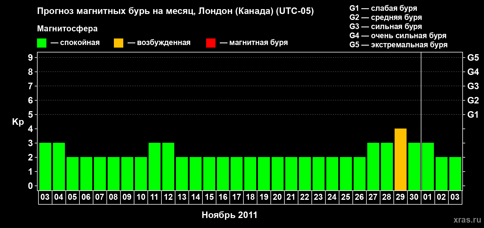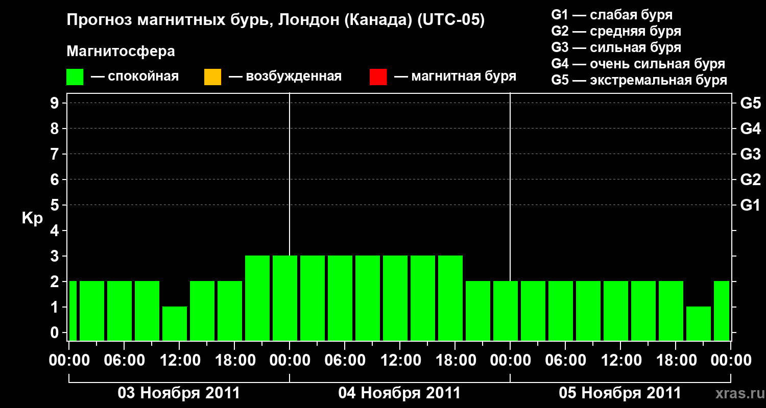 Прогноз магнитных бурь Лондоне (Канада) — 3 ноября 2011 года