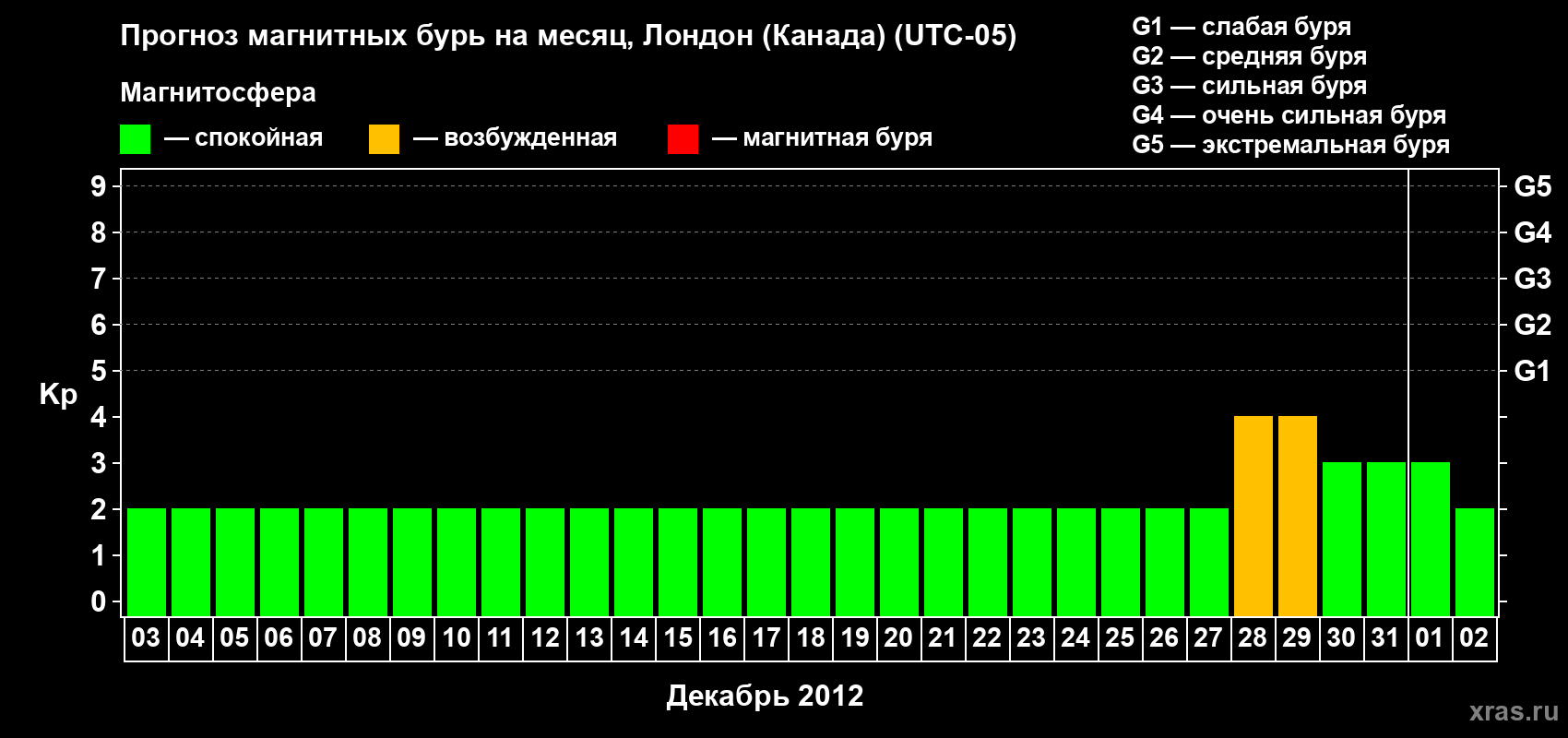 Прогноз магнитных бурь Лондоне (Канада) — 3 декабря 2011 года