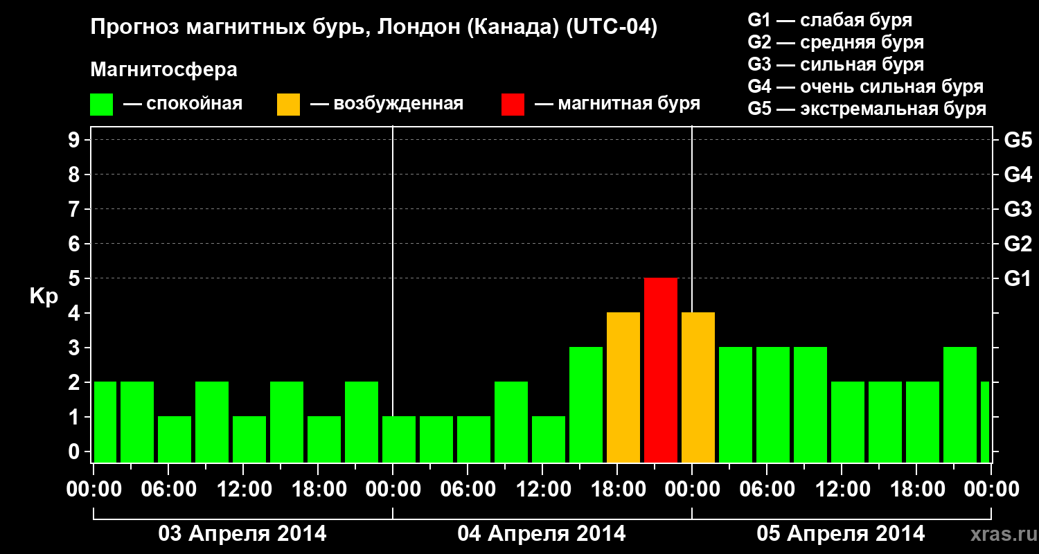 Прогноз магнитных бурь Лондоне (Канада) на 3 апреля 2014 года