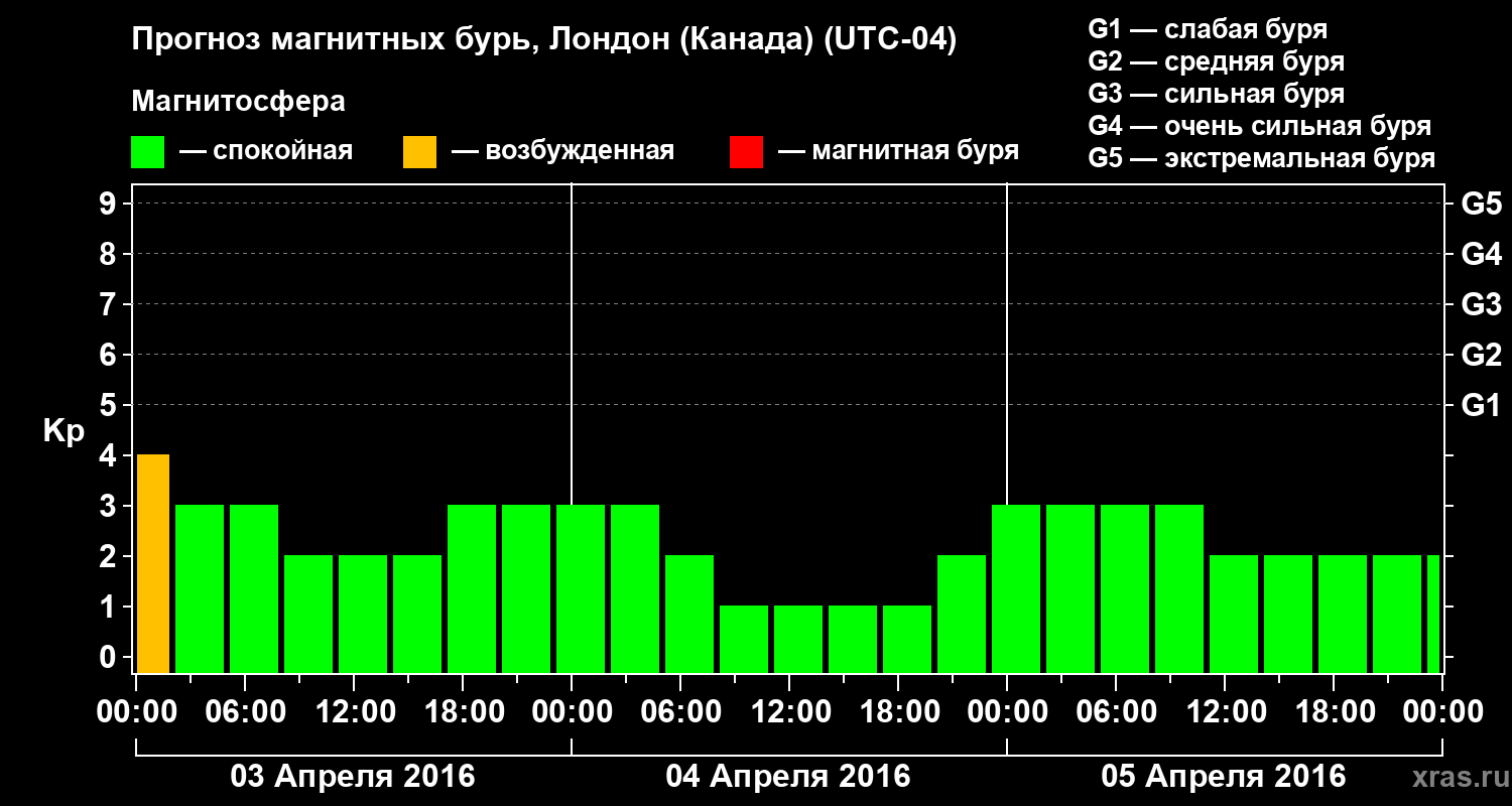 Прогноз магнитных бурь Лондоне (Канада) — 3 апреля 2016 года