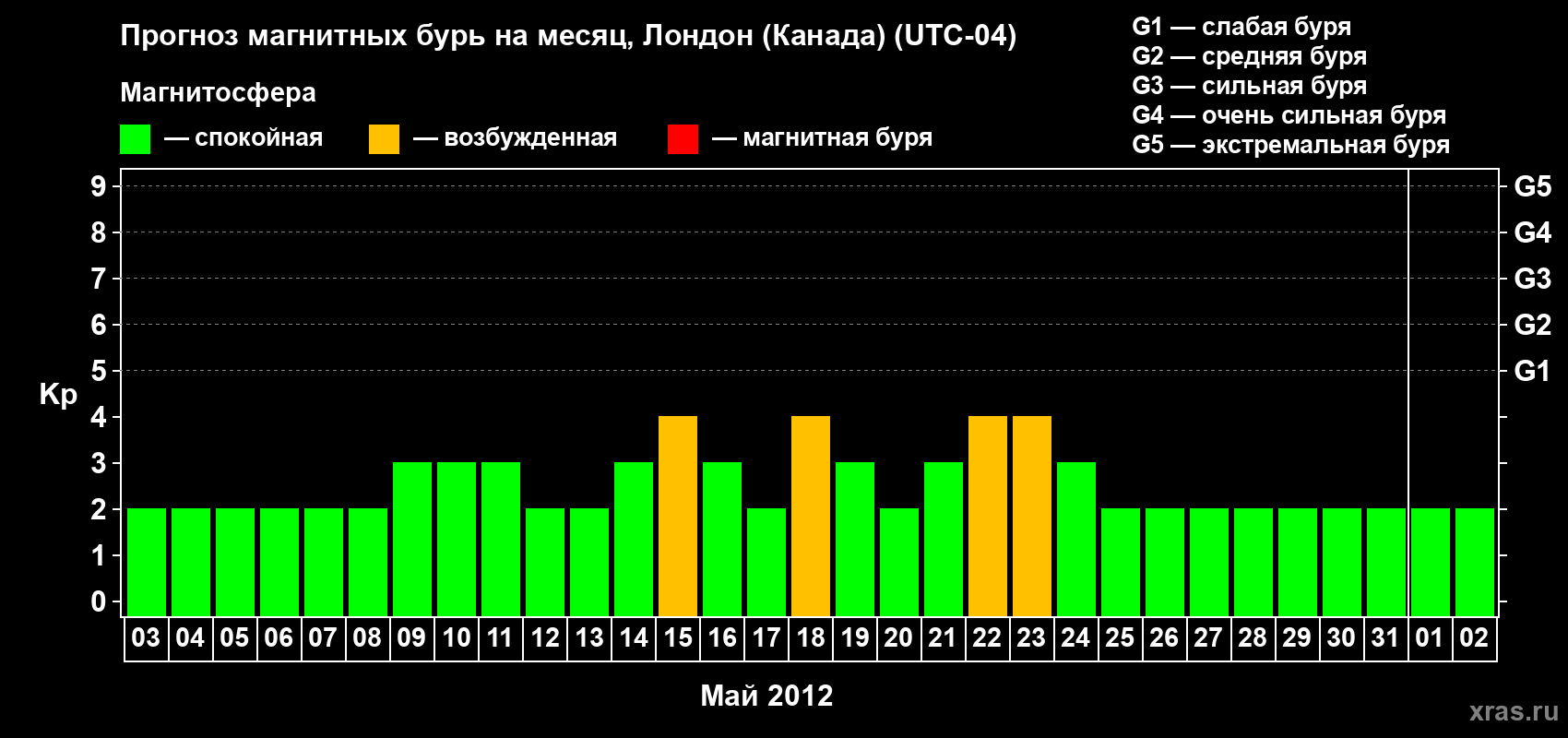 Прогноз магнитных бурь Лондоне (Канада) — 3 мая 2012 года