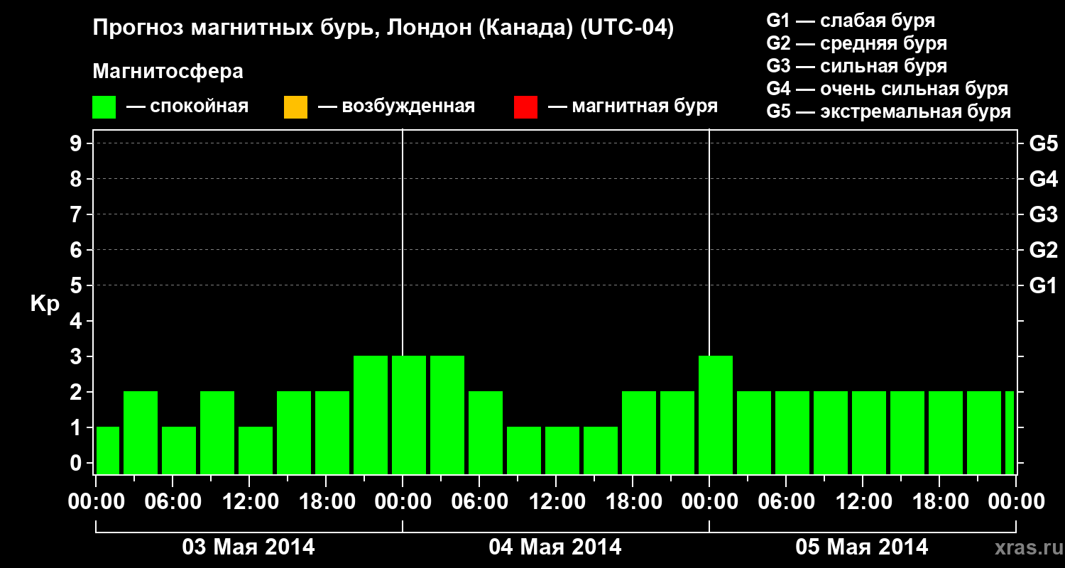Прогноз магнитных бурь Лондоне (Канада) — 3 мая 2014 года