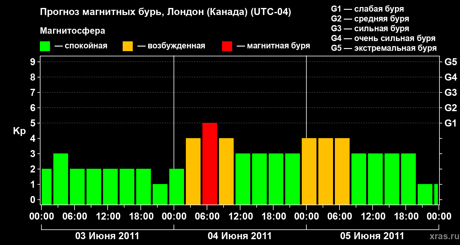 Прогноз магнитных бурь Лондоне (Канада) на 3 июня 2011 года