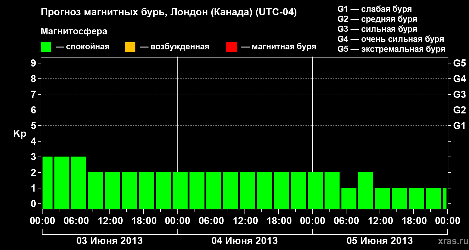 Прогноз магнитных бурь Лондоне (Канада) — 3 июня 2013 года