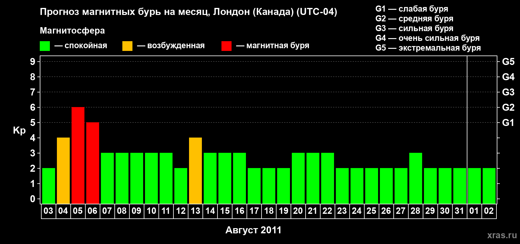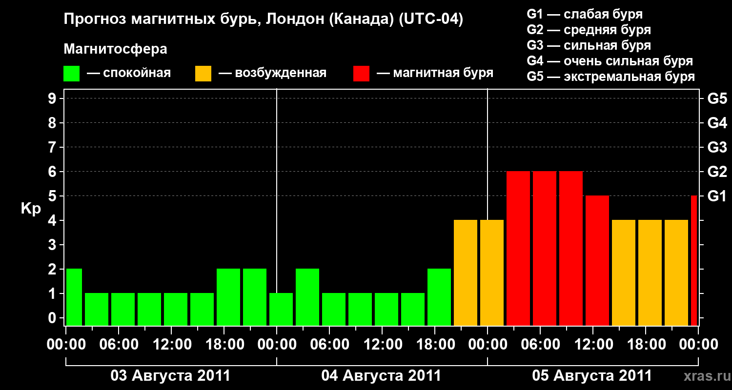 Прогноз магнитных бурь Лондоне (Канада) — 3 августа 2011 года