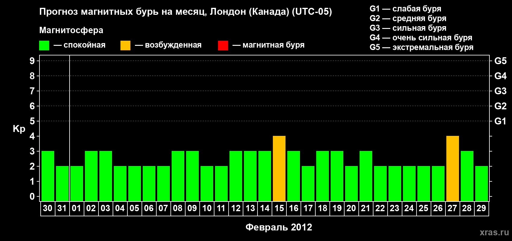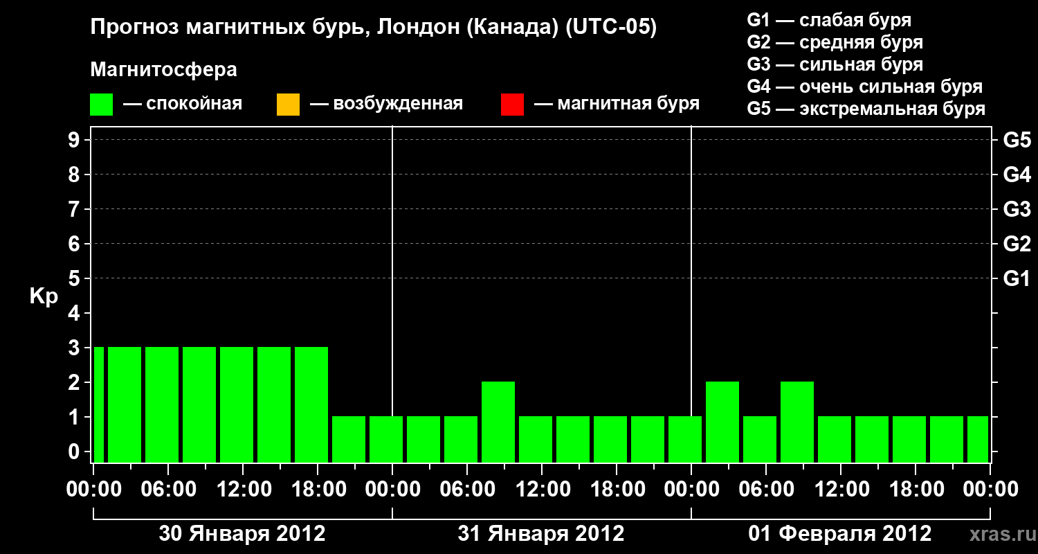 Прогноз магнитных бурь Лондоне (Канада) — 30 января 2012 года