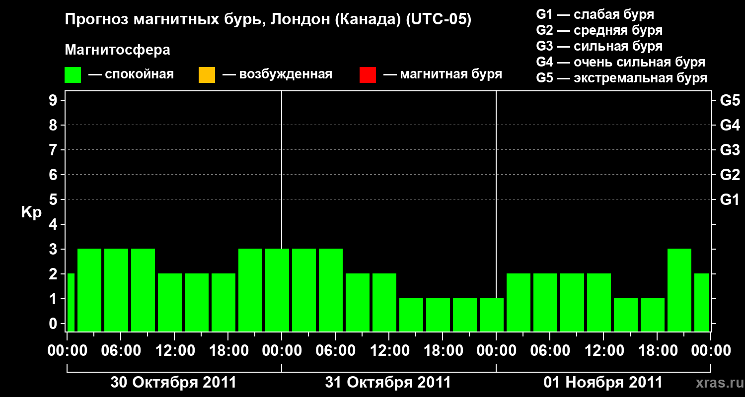 Прогноз магнитных бурь Лондоне (Канада) — 30 октября 2011 года