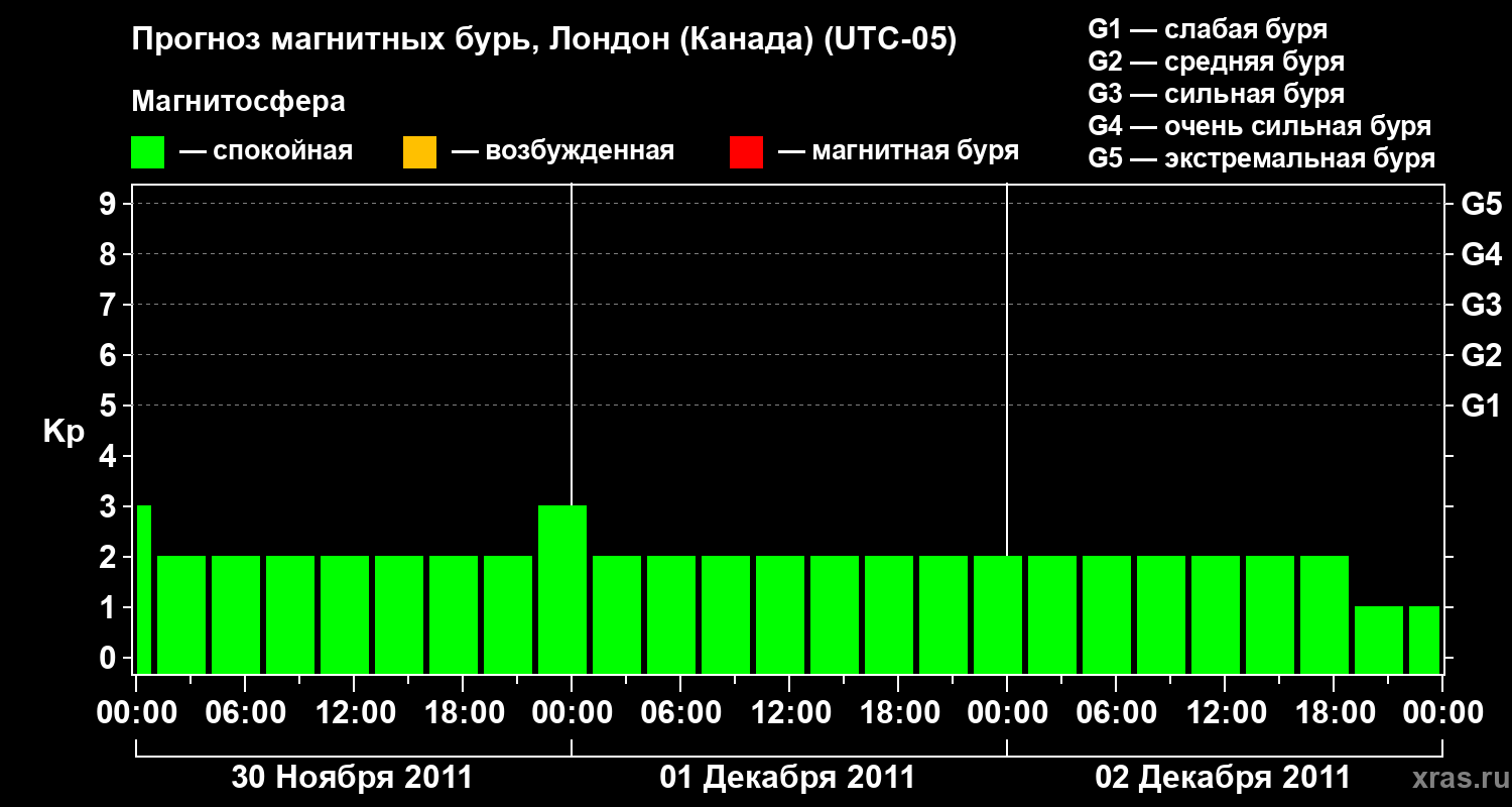 Прогноз магнитных бурь Лондоне (Канада) — 30 ноября 2011 года