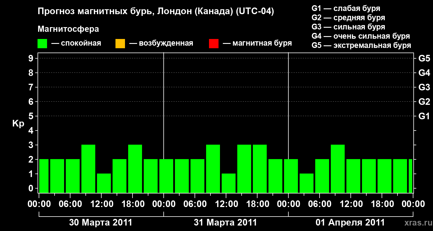 Прогноз магнитных бурь Лондоне (Канада) — 30 марта 2011 года