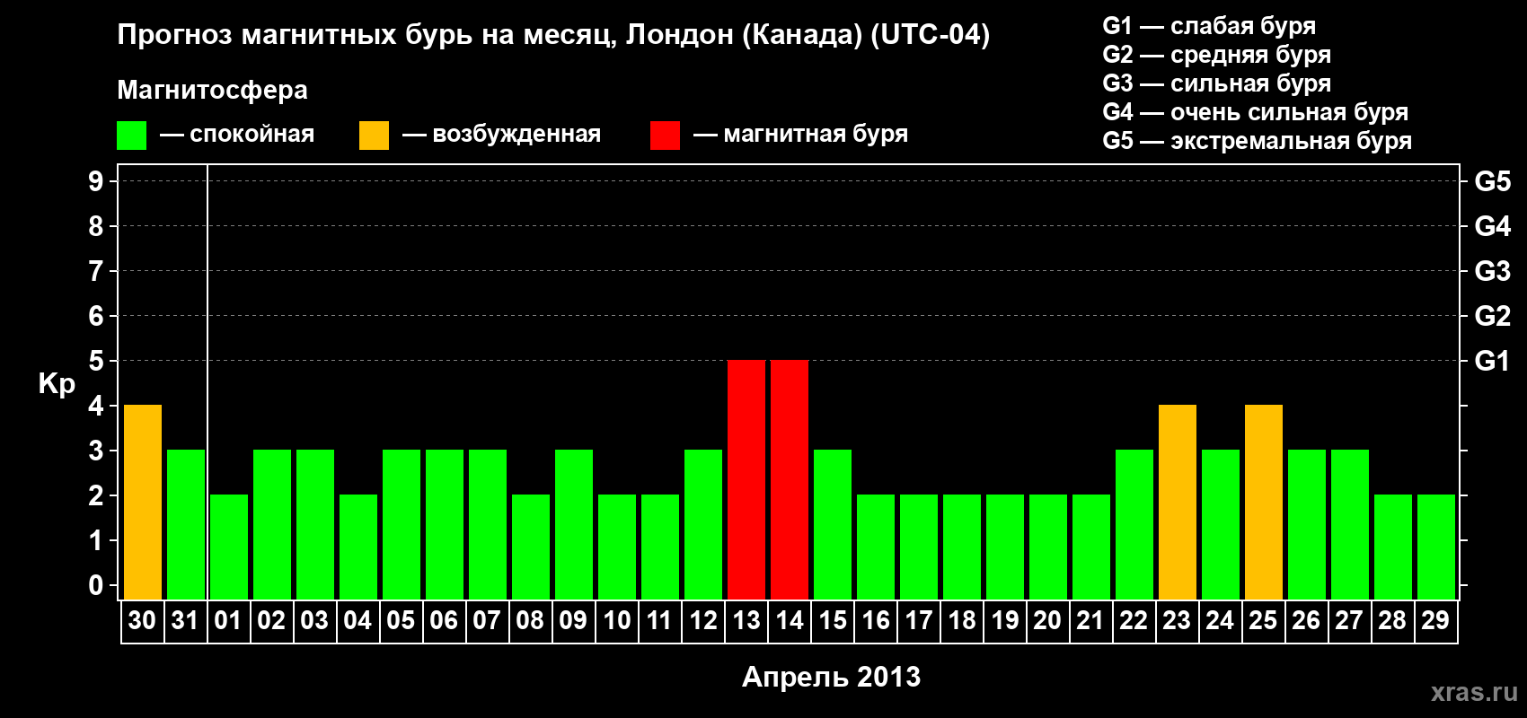 Прогноз магнитных бурь Лондоне (Канада) — 30 марта 2013 года