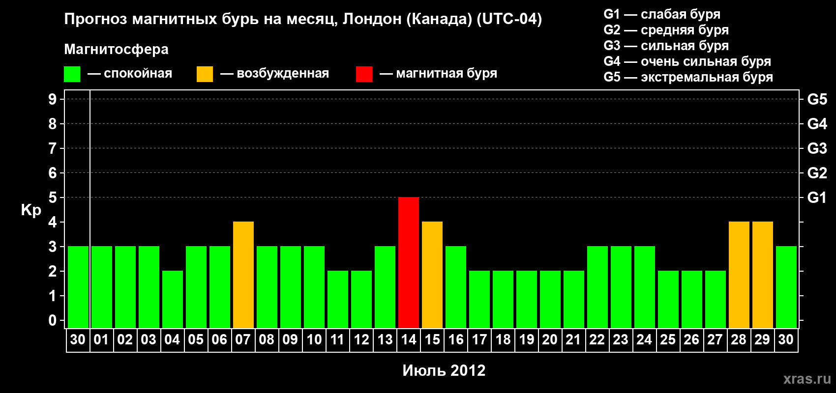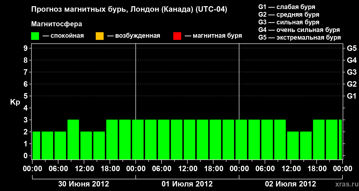 Прогноз магнитных бурь Лондоне (Канада) — 30 июня 2012 года