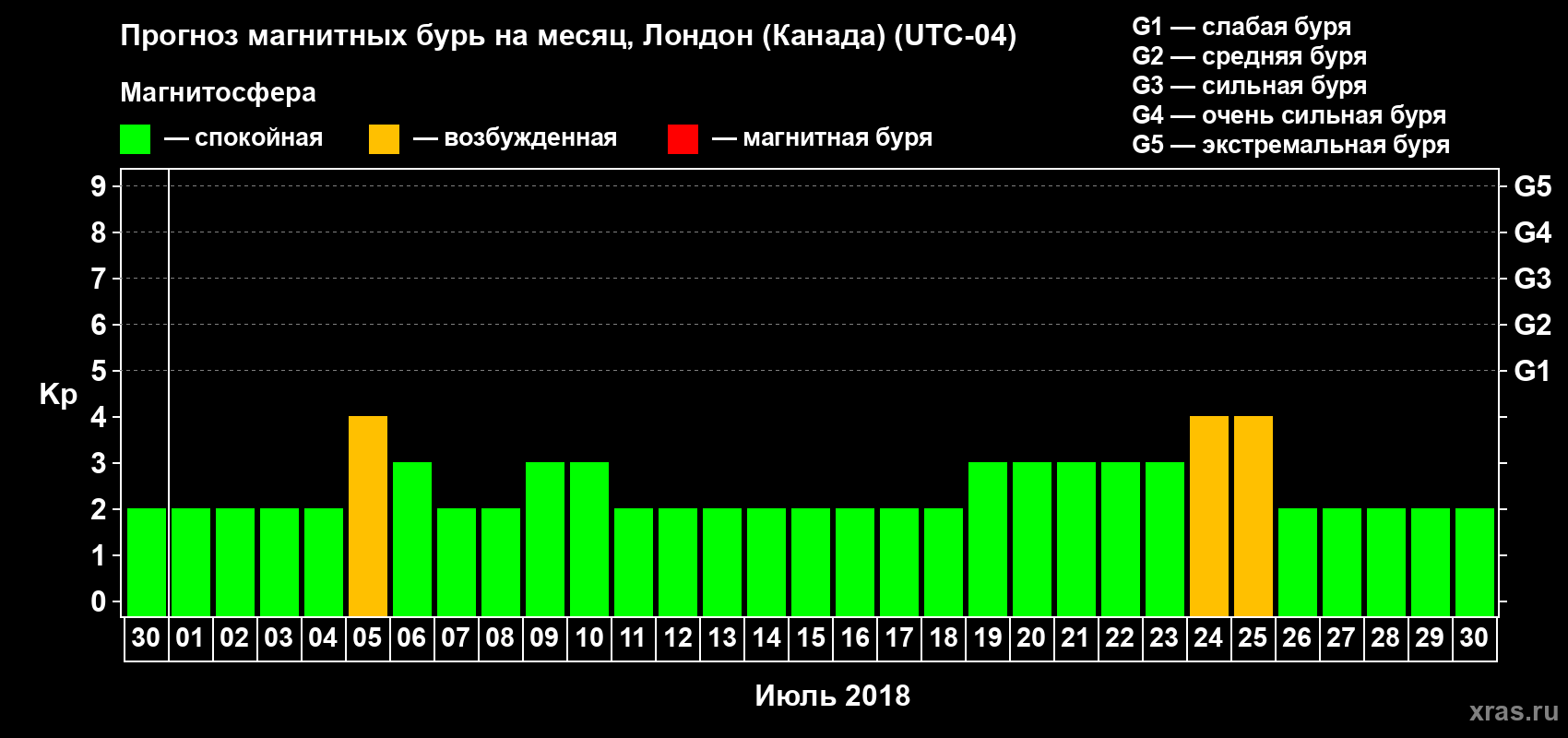 Прогноз магнитных бурь Лондоне (Канада) — 30 июня 2018 года