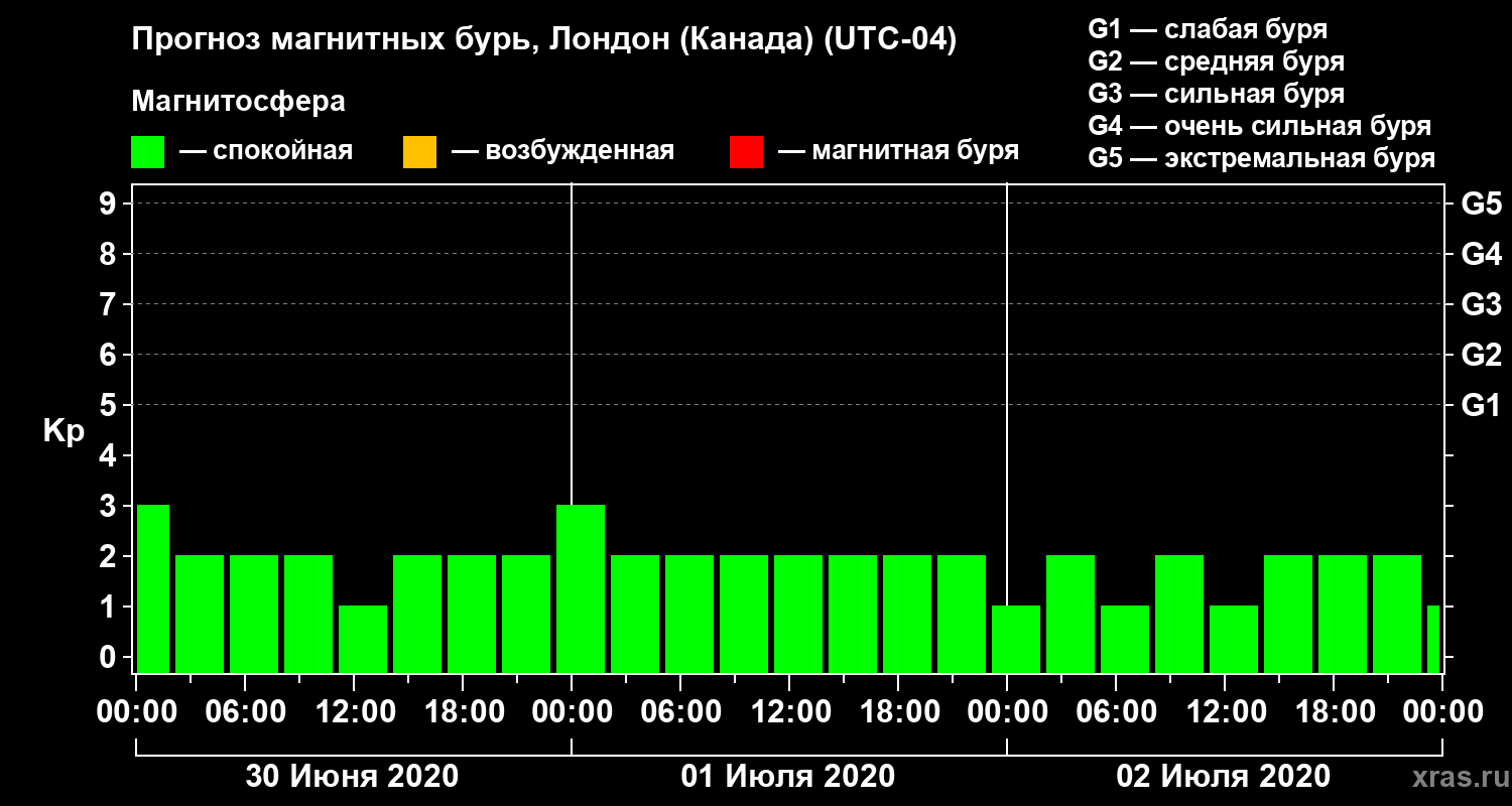 Прогноз магнитных бурь Лондоне (Канада) — 30 июня 2020 года