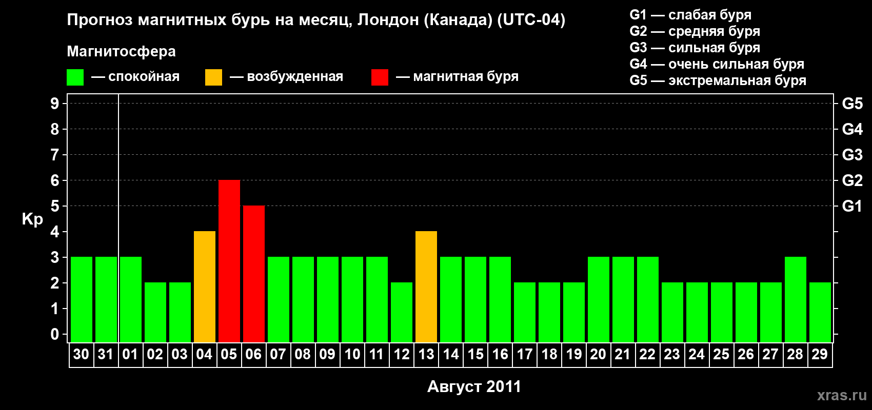 Прогноз магнитных бурь Лондоне (Канада) — 30 июля 2011 года