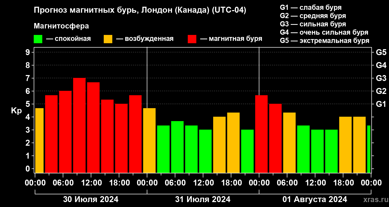 Прогноз магнитных бурь Лондоне (Канада) — 30 июля 2024 года